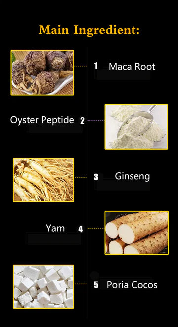 - Oyster Peptide: Provides a rich source of minerals, including iron, zinc, calcium, and selenium, which are often deficient in modern diets. Oysters are also rich in vitamin B12, the stress-reducing vitamin, along with amino acids, particularly taurine. Taurine is used by the brain to help regulate mood, adapt to stress, and support energy levels. While oysters are abundant in many nutrients, they are more well-known for their high zinc content. This important mineral is essential for healthy hair, skin, and nails, immune system function, and wound healing. Zinc is vital for healthy prostate function, sperm production, and sexual drive. Consumption of oysters can therefore boost sexual vitality and energy.